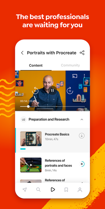يحتوي التطبيق على واجهة سهلة الاستخدام تتيح لك اختيار لغة الصوت والترجمات، والتي تتوفر باللغات البرتغالية والإنجليزية والإسبانية والألمانية والفرنسية والإيطالية والبولندية والهولندية. يمكنك المشاركة في مجتمع الدورة، والنظر إلى مشاريع الطلاب الآخرين، وإنشاء قوائم لحفظ الدورات لاحقًا. إذا كنت عضوًا في دومستيكا بلس، يمكنك استخدام رصيدك لفتح الدورات مباشرة في التطبيق، ويمكنك التحقق من عدد الرصيد الذي لديك ومتى ينتهي صلاحيته. انضم إلى دومستيكا وتعلم بالخطى الخاصة بك من أفضل المحترفين في صناعة الإبداع.